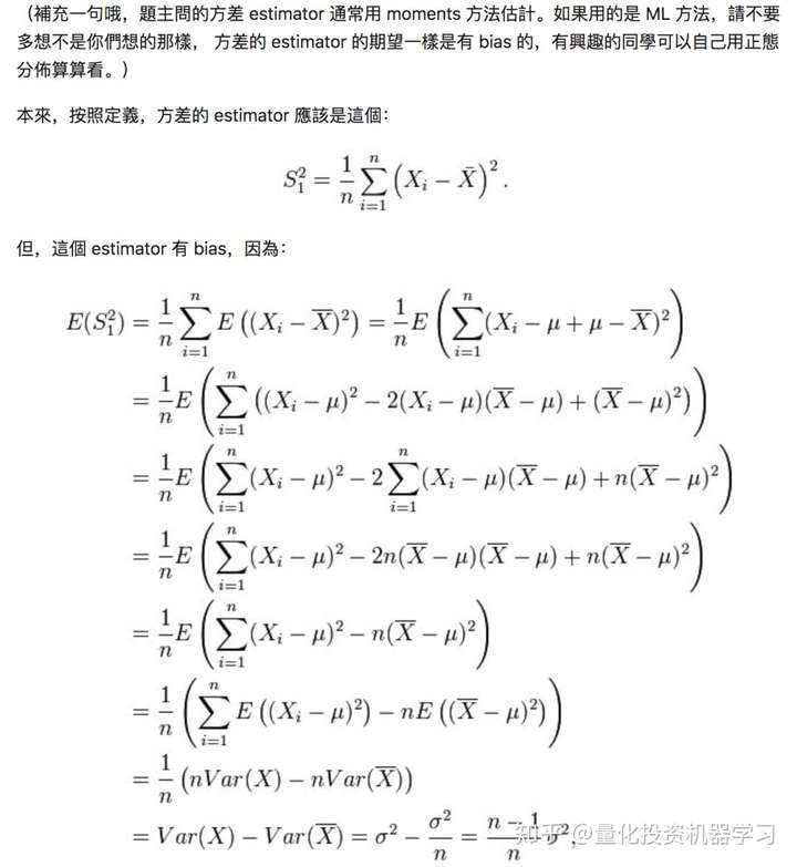 样本方差的分母为什么是n-1,而不是n?