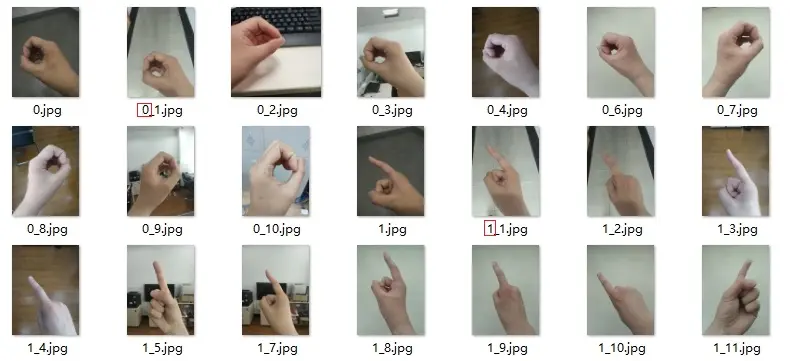 该数据集共215张数字手势图片,该数据集由我,女票(李娜)及好友:蒋雯、宋俞璋、彭仲俊、张蒙、袁程、邢守一和郑超自己拍照而来。(排名不分先后,大家贡献一样),感谢他们的帮助。每张图片对应的标签已标记在图片的命名中,图片命名格式为:标签_编号。例如: