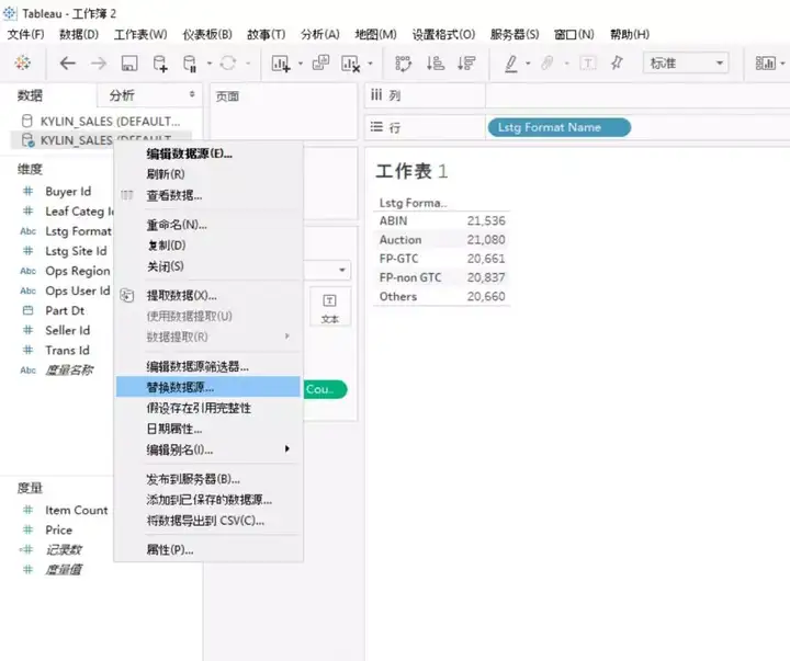 b.替换报表中使用的数据源为 Kyligence Enterprise 数据源,快速完成所有报表的无缝迁移: