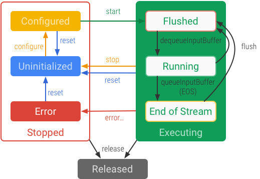 queueInputBuffer(...)将缓冲区提交给MediaCode。 - 向