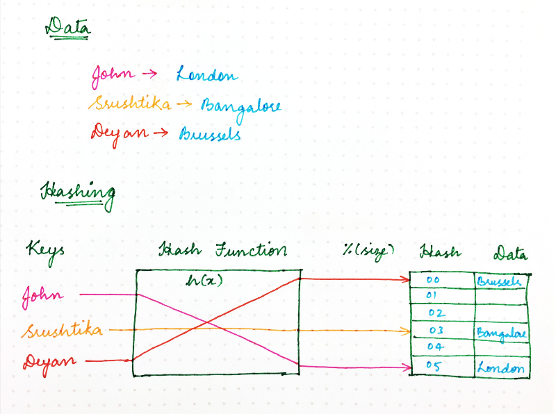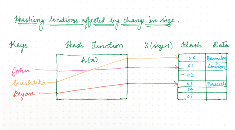 location = hash(key) mod size