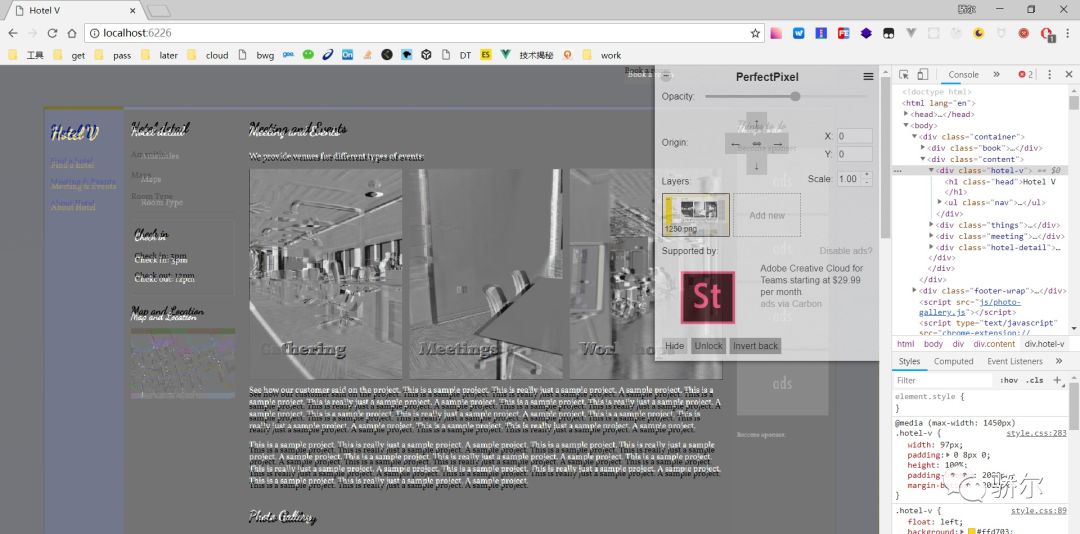 像素级还原是前端工程师和设计师们对页面还原度最理想的状态,今天给大家介绍一款辅助你实现像素级还原的浏览器拓展程序:PerfectPixel ,这是一款 WellDoneCode 出品的像素级还原度检查工具,完全免费,有不影响体验的广告,其原理很简单:直接将设计图插入页面,在开发过程中始终会有一个标准参考值辅助你像素级还原页面。我认为其适用人群有:
