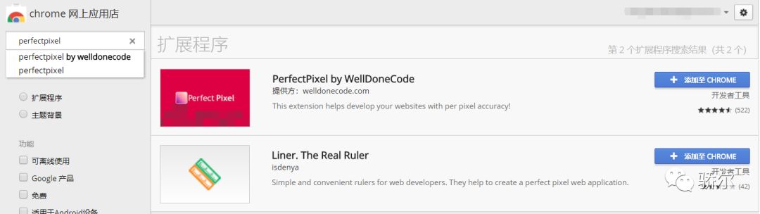 以 Chrome 为例,在 Chrome 应用商店搜索 PerfectPixel 然后添加至 Chrome 即可。