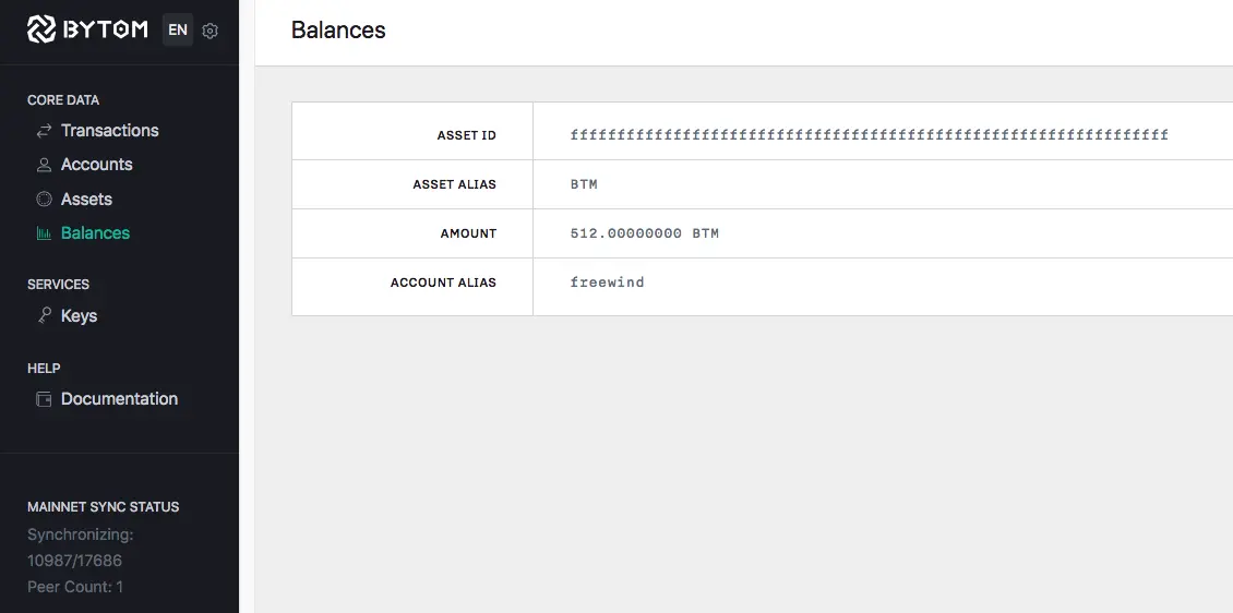 在Dashboard中,左侧有一栏名为"Balances"(余额),点击后,我们可以看到每个帐户当前有多少余额,如下图: