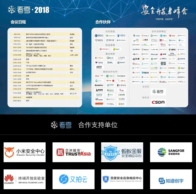 看雪安全开发者峰会聚焦开发与安全。“万物互联,安全开发”,旨在以“防”为基准,安全开发为主旨,引导广大企业和开发者关注移动、智能设备、物联网等领域的安全,提高开发的安全技巧,创造出更安全的产品。
