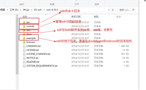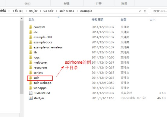 solrhome: solr-4.10.3\example\solr solrcore: solr-4.10.3\example\solr\collection1 包含配置文件,索引文件日志信息