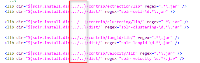 solrcore 需要添加一个扩展依赖包,通过 lib 标签来指定依赖包的地址