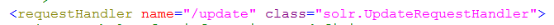requestHandler 请求处理器,定义索引和搜索的访问方式。 通过 /update 维护索引,可以完成对索引的添加、修改、删除操作。
