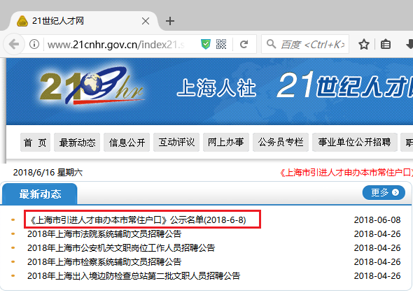 1、21世纪人才网(落户申请和公示):