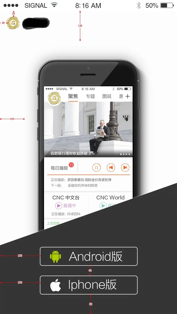 包括两个下载按钮的背景图片,logo,底部梯形的渐变背景和body部分的mobile 背景图。注意这些图片都是在750*1334的设计稿里面切出来的,所以尺寸都是设计稿里的原始尺寸,比如android.png: