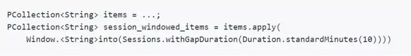 例如,下面 Google Cloud Dataflow 程序(请参阅:https://cloud.google.com/dataflow/model/windowing )会创建一个会话窗口,如果针对某个 Key 在 10 分钟内都没有数据达到,则会触发该会话窗口 (译者注: 例如某个用户在访问 APP 期间中断了 10 分钟没有操作)。 而间隔 10 分钟后,如果新的数据到达,系统将创建一个新的会话窗口。