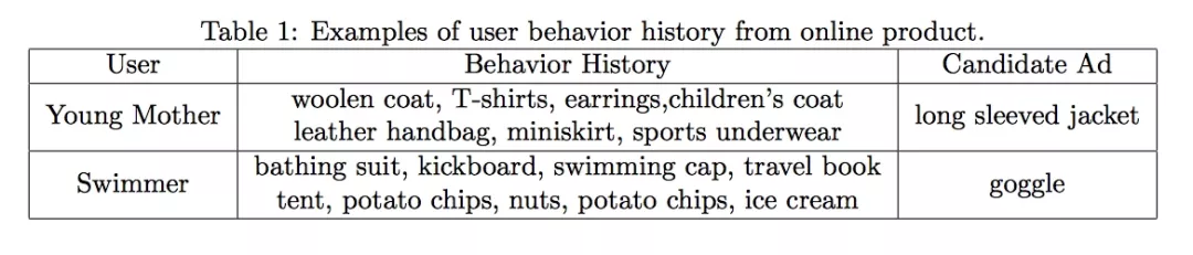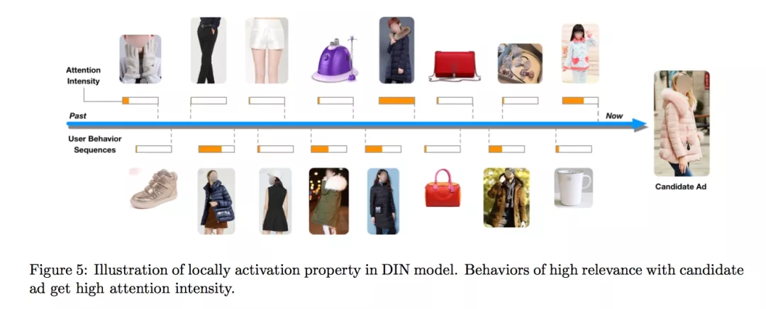 Local Activation:一个爱游泳的人,他之前购买过 travel book、ice cream、potato chips、swimming cap。当前给他推荐的商品 (或者说是广告 Ad) 是 goggle(护目镜)。那么他是否会点击这次广告,跟他之前是否购买过薯片、书籍、冰激凌一丁点关系也没有!而是与他之前购买过游泳帽有关系。也就是说在这一次 CTR 预估中,部分历史数据 (swimming cap) 起了决定作用,而其他的基本都没啥用。