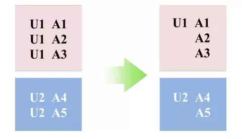 对于一个用户,一次 pageview 中假设展示了 200 个商品。那么每个商品就对应一条样本。但是,这 200 条样本中是有很多Common Feature的。所以 DIN 的实现中并没有把用户都展开,类似于下图: