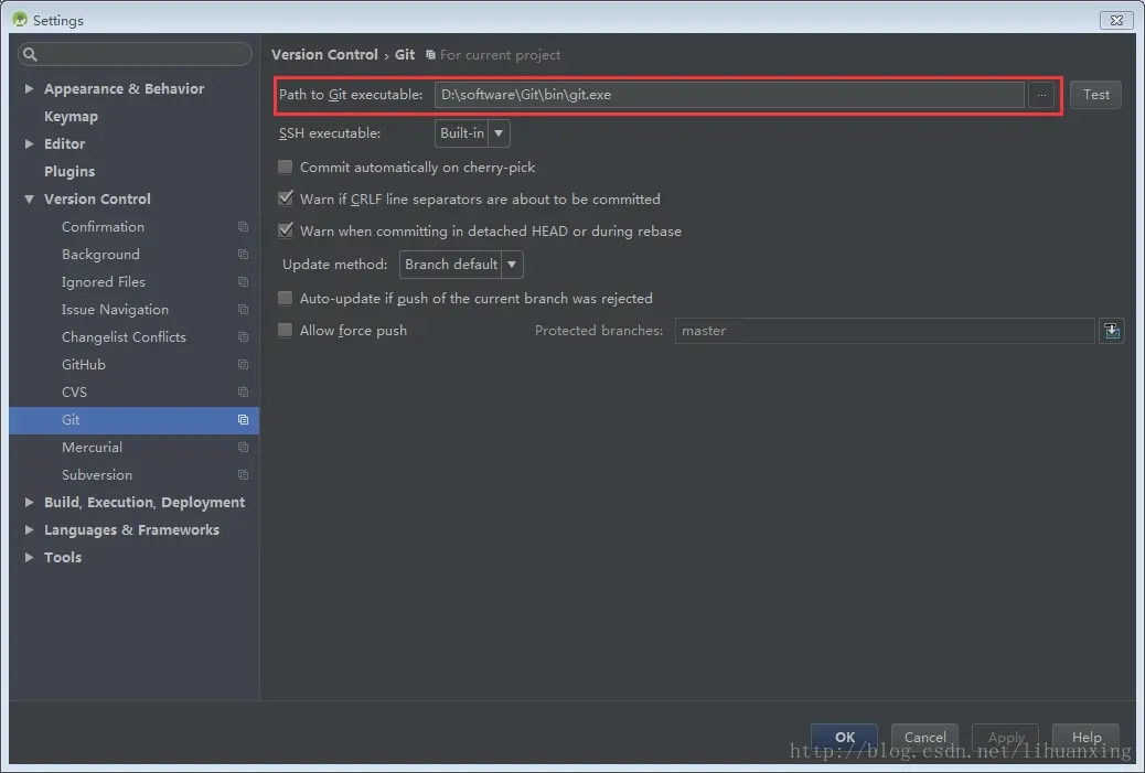 image 配的地址就之前git的安装路径,点击test可以测试是否匹配成功