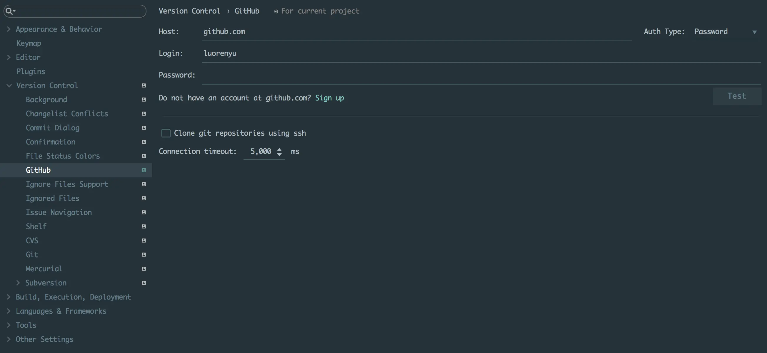在AndroidStudio中配置github的账号密码,像前面配置git一样
