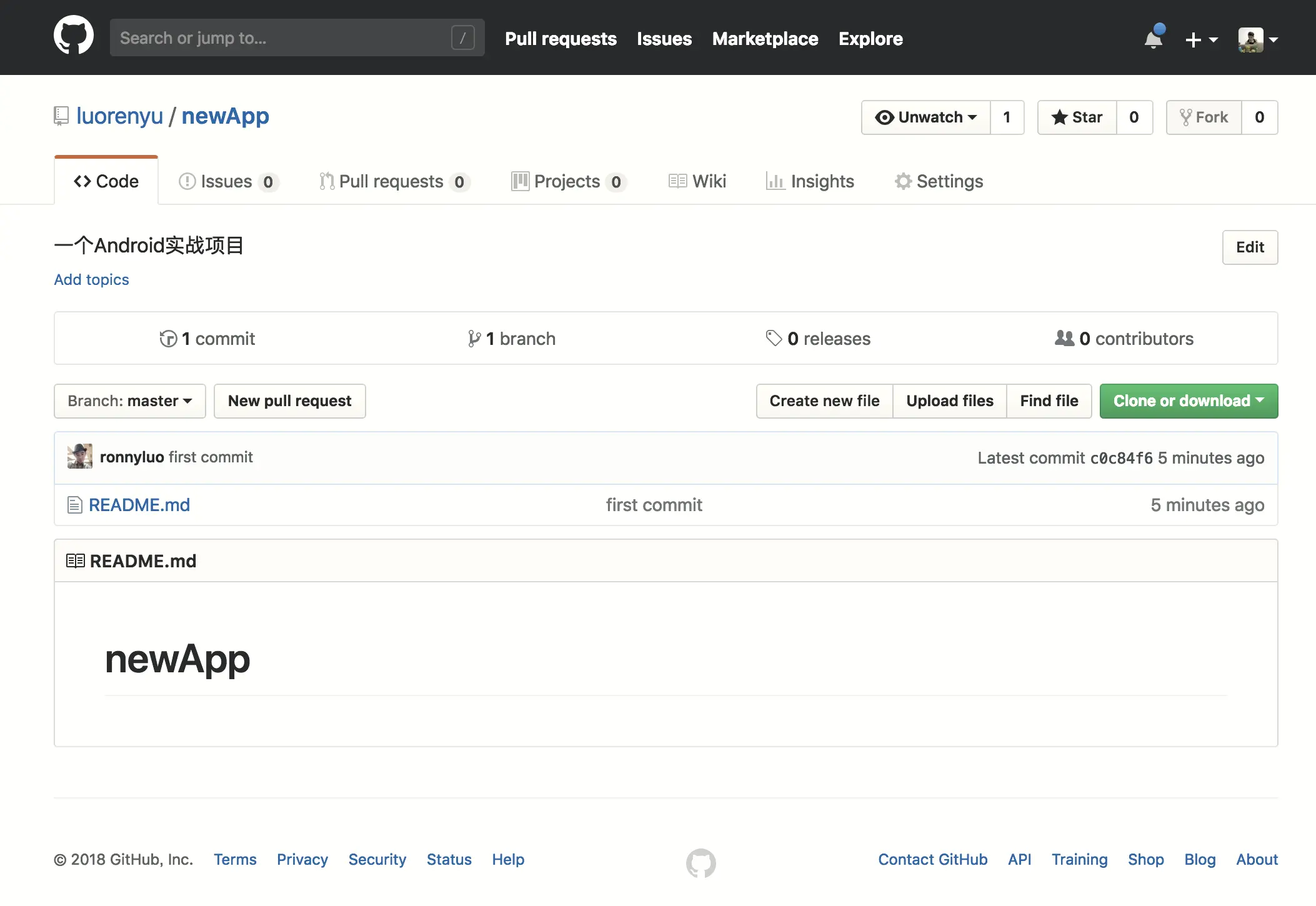 查看github上的newApp项目这样我们就成功在github上面,管理了我们的第一个文件README