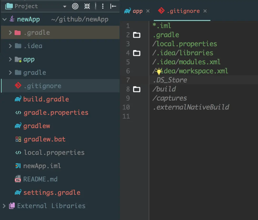 .ignore文件内容 当然在我们创建好项目的时候这个文件git已经帮我创建好了,所以暂时我们什么都不用动。