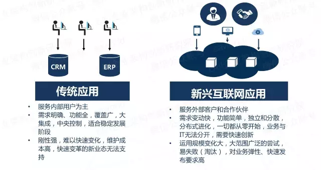 近年来我们大家都体会到了互联网、移动互联带来的好处,作为IT从业者,在生活中时刻感受互联网好处的同时,在工作中可能感受的却是来自自互联网的一些压力,那就是我们传统企业的IT建设也是迫切需要转型,需要面向外部客户,我们也需要应对外部环境的快速变化、需要快速创新,那么我们的IT架构也需要向互联网企业学习作出相应的改进,来支撑企业的数字化转型。