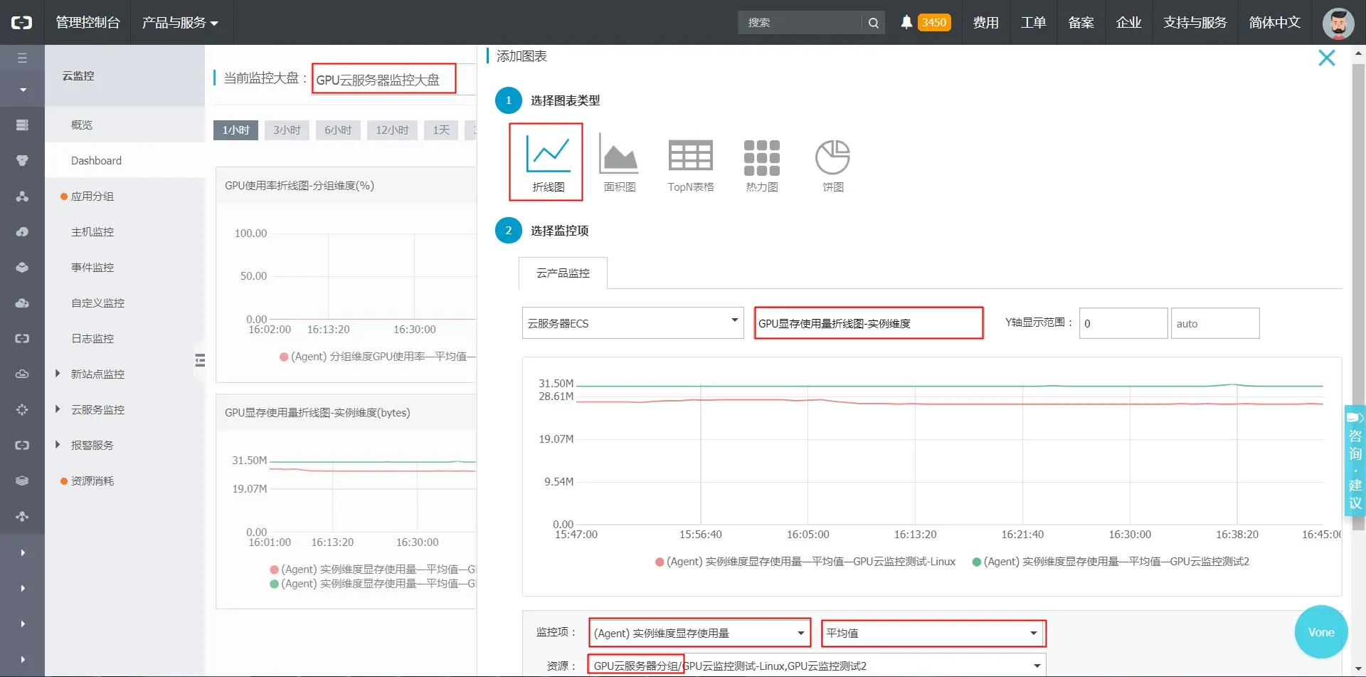目前只有GPU计算型实例支持GPU云监控,实例必须要安装GPU驱动和云监控插件的1.2.28以上版本,即可在主机监控查看GPU相关监控数据、配置报警规则,或在Dashboard中配置监控图表。
