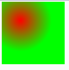 val radialGradient = RadialGradient(300f, 300f, 500f, Color.RED, Color.GREEN, Shader.TileMode.CLAMP)