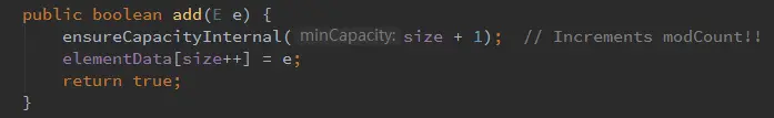 回到方法中,接下来将目标element放入数组的index位置,size自增。元素插入操作结束。