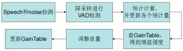 以WebRTC为例,它的自动增益控制算法的基本流程图如下所示。
