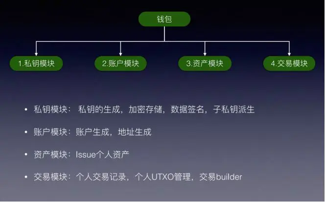 私钥模块:主要用于管理私钥(私钥的生成,存储,备份等)和签名。