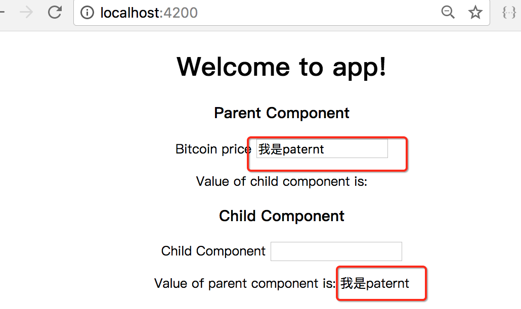 思路: 在parent页面上输入文字, 在child 页面上显示文字。 并且, parent 与 child 在同一个页面上。所以,需要在 parent.component.html 中,引入 <app-child>