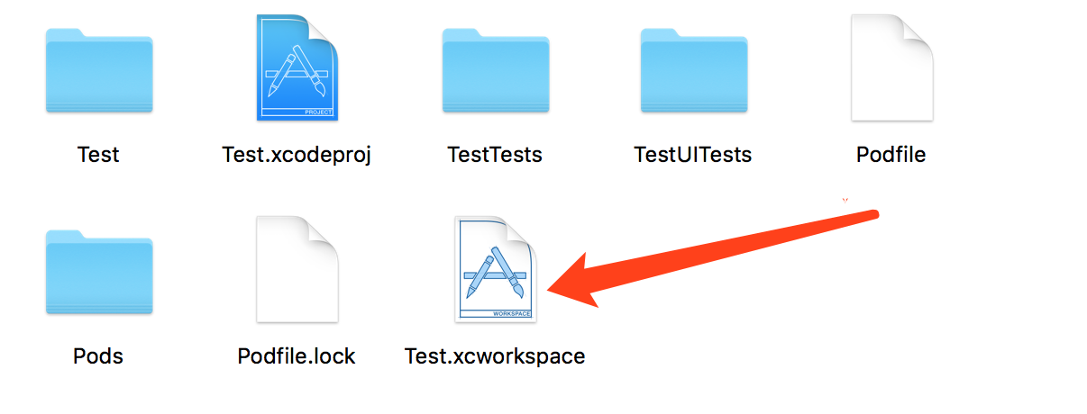 这里请注意打开的事 .xcworkspace, 切记!!!