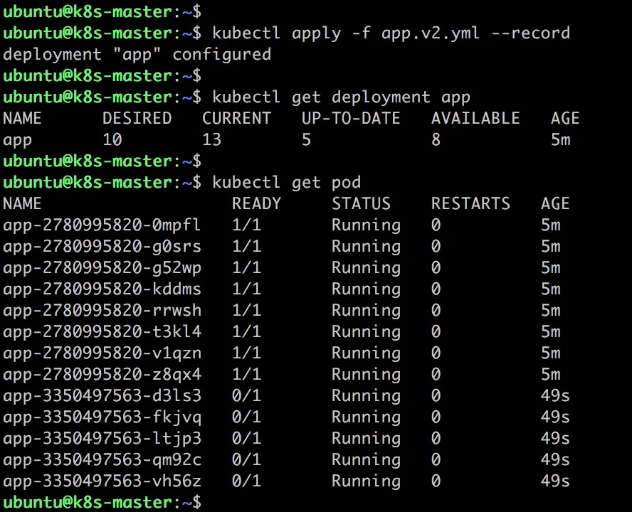 AVAILABLE8 表示当前处于 READY 状态的副本数:即 8个旧副本。