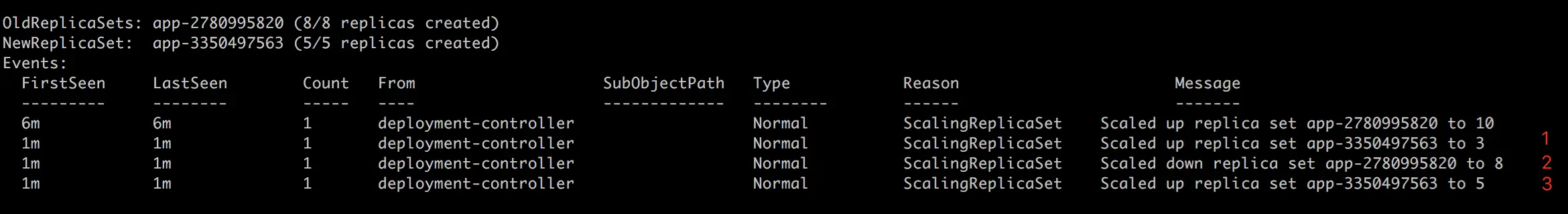 接下来我们要回答:为什么新创建的副本数是 5 个,同时只销毁了 2 个旧副本?