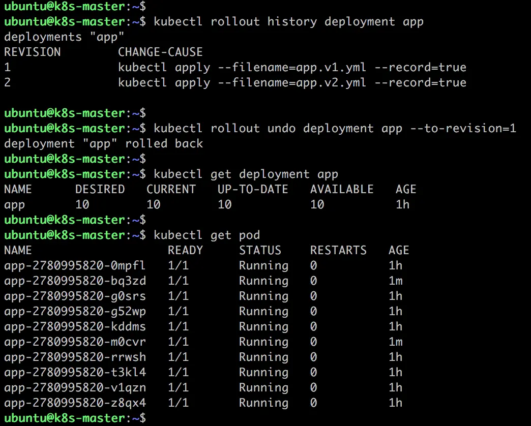 如果滚动更新失败,可以通过 kubectl rollout undo 回滚到上一个版本。