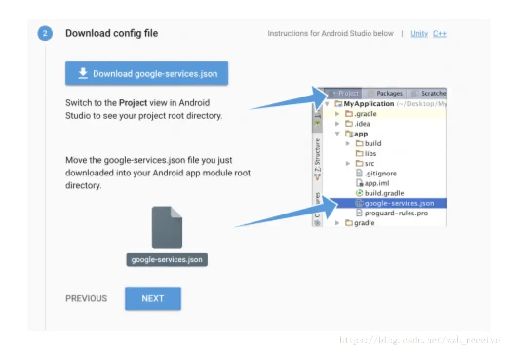 After this, you’ll be able to download a google-services.json file. Download it and place this file in your app/ directory.