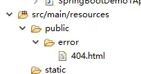 - 在spring boot项目的src/main/resource下创建public/error文件夹,在文件夹在创建对应错误状态码的页面名