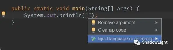 - 光标在字符串引号中,Alt+Enter 选择 Inject language or reference 回车