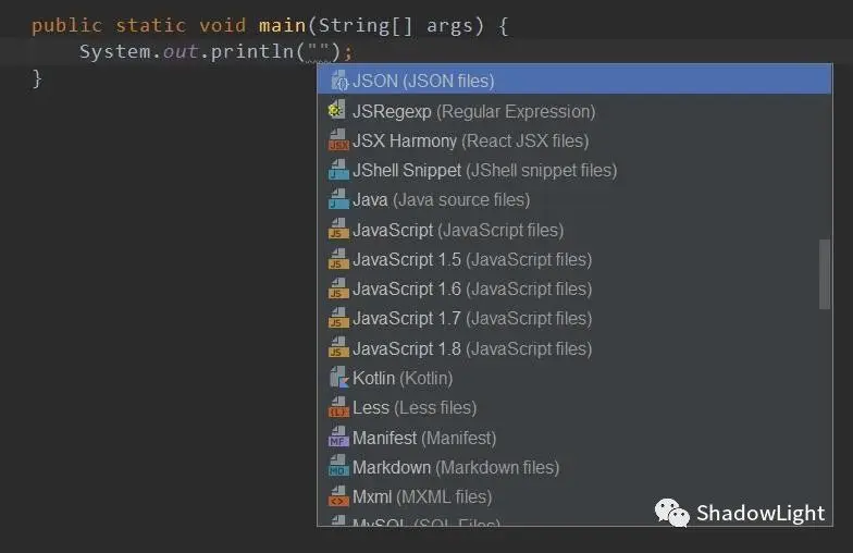 直接打出 psvm,即出现自动补全 补全后的代码 其他亦如