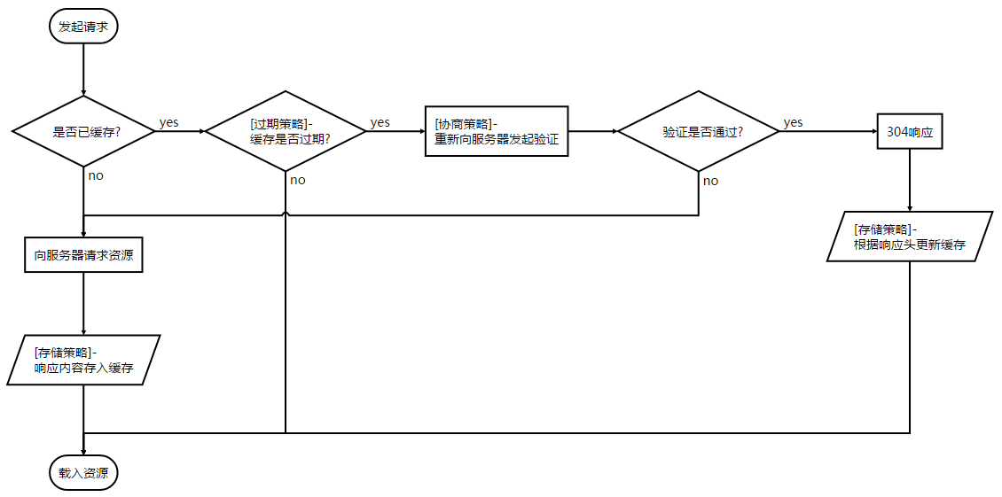 - 缓存存储策略,决定是否存储缓存到本地,涉及HTTP头部:Cache-Control: (public | private | no-store)