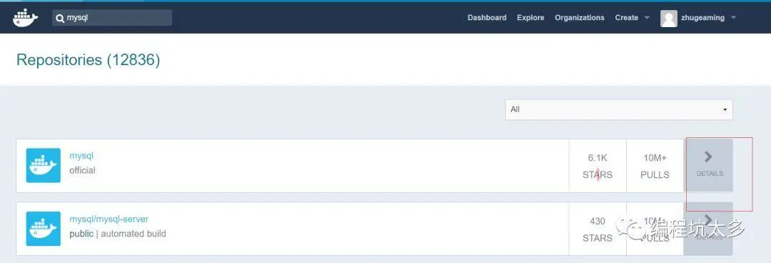 进入docker的官网下载mysql镜像
