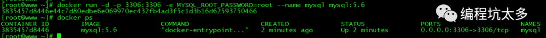 docker run -d -p 3306:3306 --name mysql mysql:5.6
