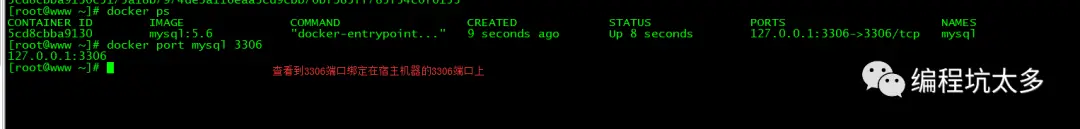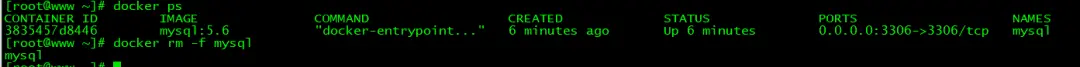 容器里面的mysql已经启动了现在咱们为了映射端口的话删除这个mysql容器