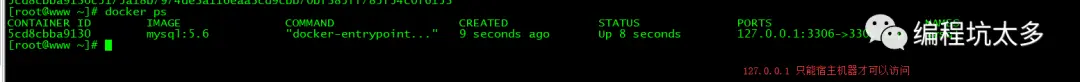 docker run -d -p127.0.0.1:3306:3306 --name mysql mysql:5.6