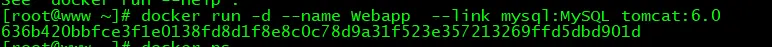 docker run -d --name Webapp–p 8000:8080 --link mysqldb:MySQL tomcat