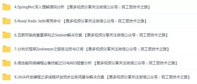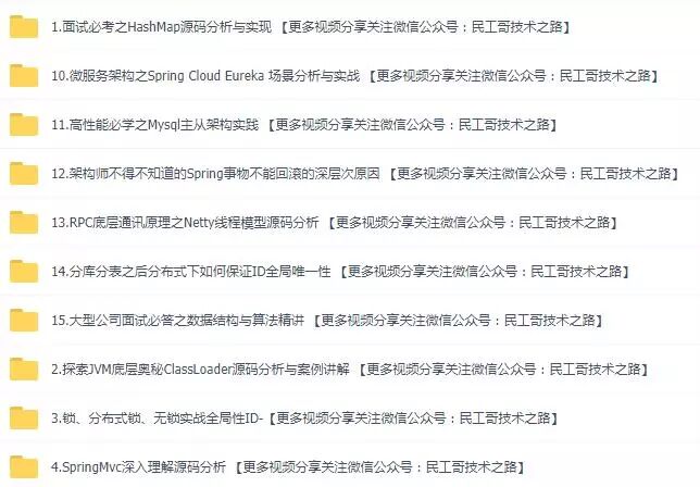 会的,不会的,或者说部分会的。那么,今天,都没有关系,因为对于这些知识点,民工哥从网上收集了一些相关的视频讲解资源,分享给大家,在这个即将金九银十到来之际,助力大家成功入职,无论大厂、小厂,总归一句话,入厂就好,有岗位就好,有钱真的好,你说呢??