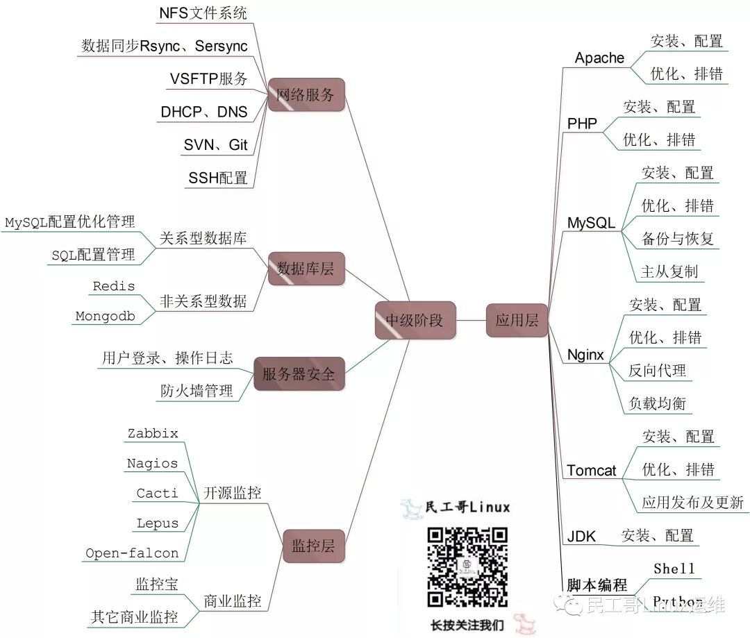 运维层级达到中级,所涉及的知识面、专业点非常广,对素质也要求非常高,随着互联网的高速发展、业务规模越来越大、架构越来越复杂,对运维也是一个不小的挑战