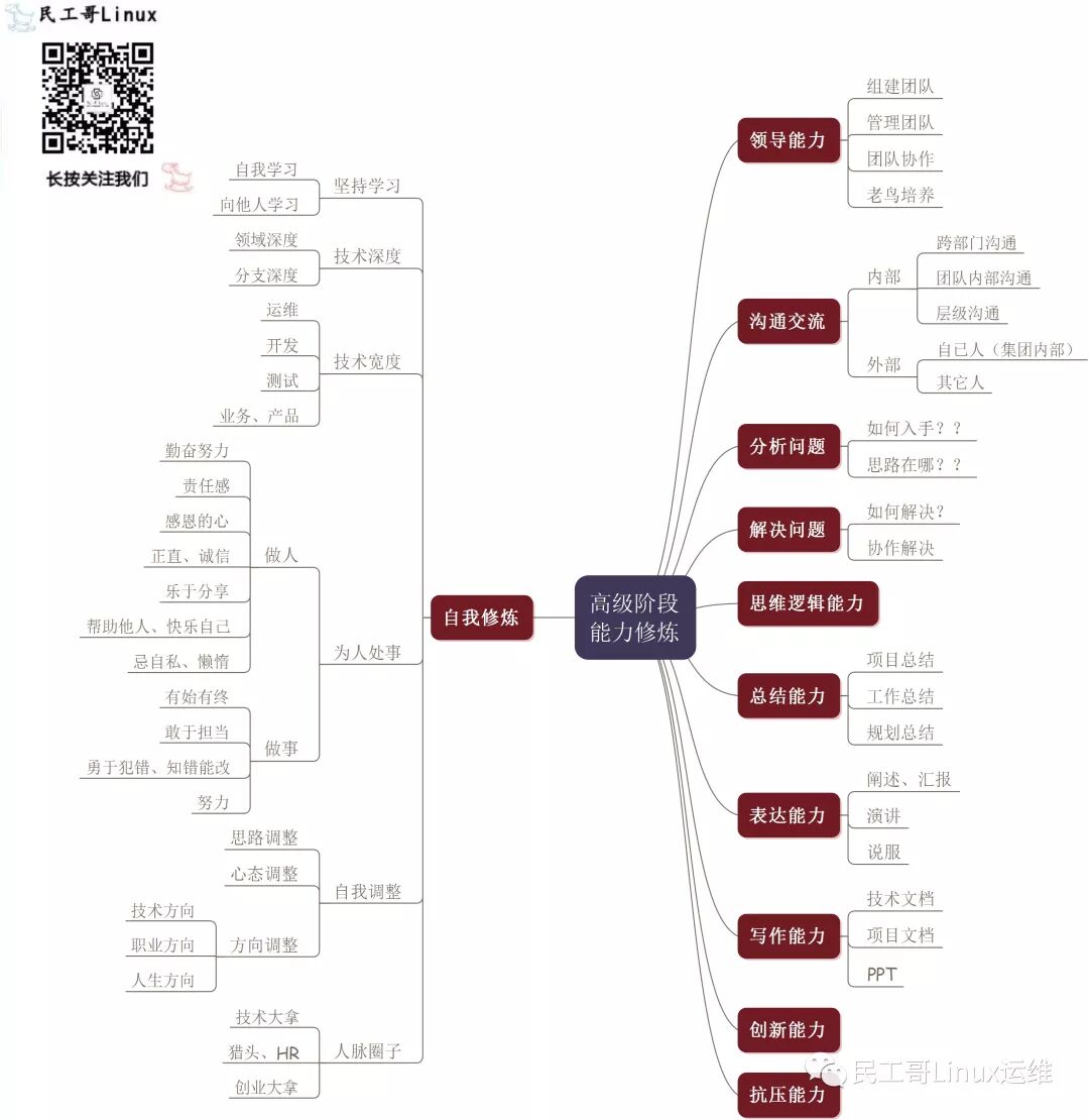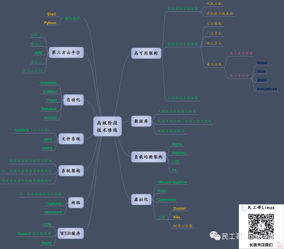 到一定深度的阶段,我们暂且称之为"终级(其实学习永无止境)"吧,此时,技术的面与点会更加的扩展、扩大,以上我也罗列一些相关的点,其实还有很多很多,一般到这类程度的技术人员,往往关注更多的是业务,而不是技术,所以一切的出发点就是业务的痛点与难点,因此,新技术的革新与学习,也对运维人员带来了更高更难度的挑战!!!