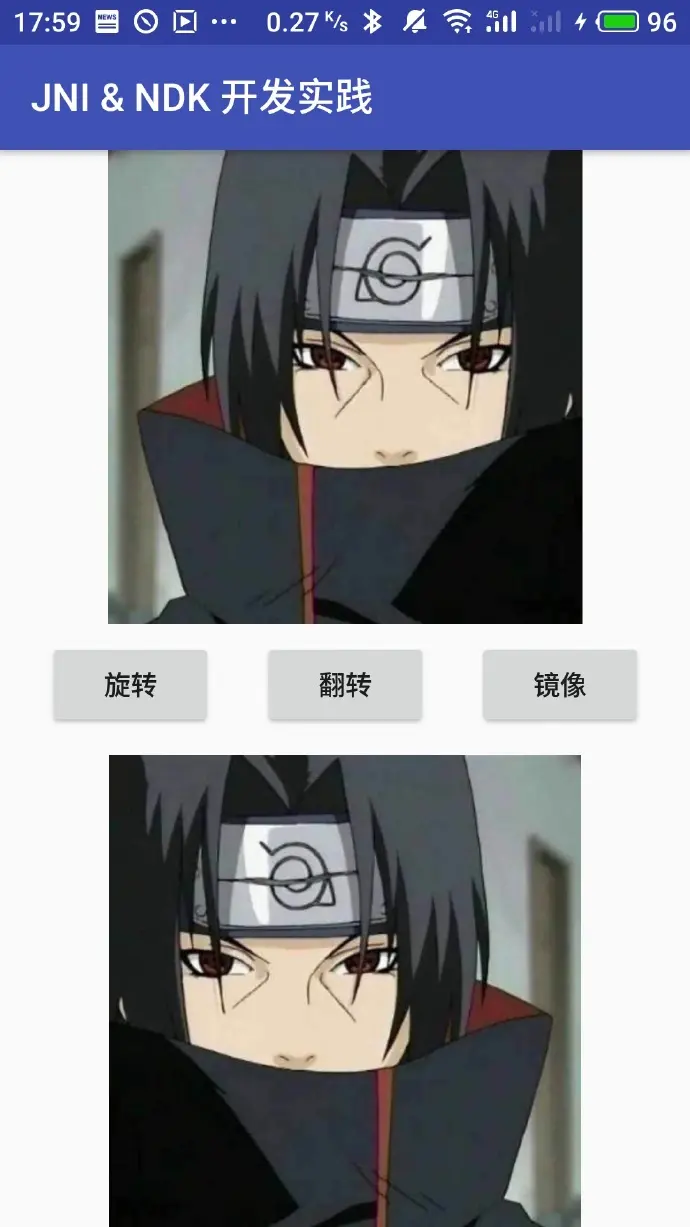 通过对 Bitmap 进行旋转,上下翻转,左右镜像来体验 JNI 的开发。