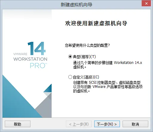 我用的环境是win8.1下安装的vmware-workstation14虚拟机软件,首先, 新建虚拟机