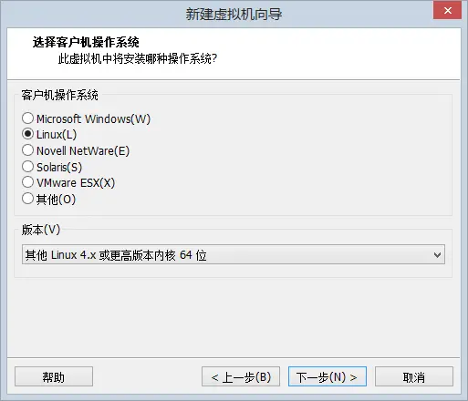 操作系统类型选择linux,版本选其他linux4.x 64位(archlinux官方已经结束了对x86_32的支持)