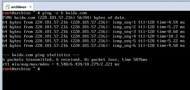 为了测试网络通畅与否 可以先ping -c 6 baidu.com