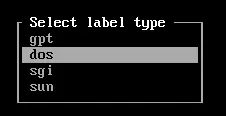 这是让你选择磁盘分区表 我这里选择dos (uefi引导建议选择gpt)